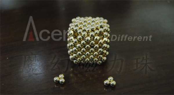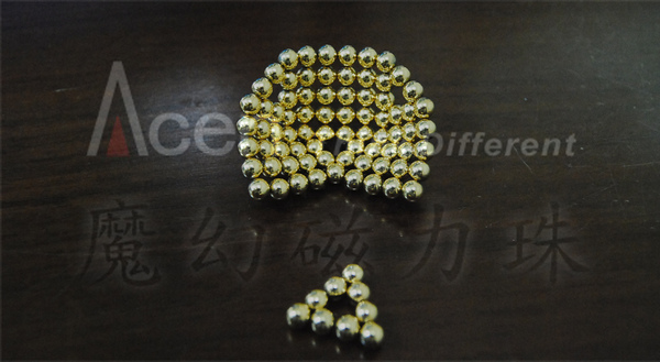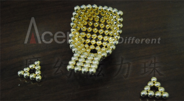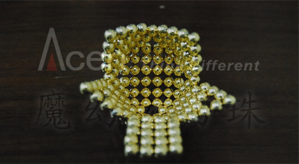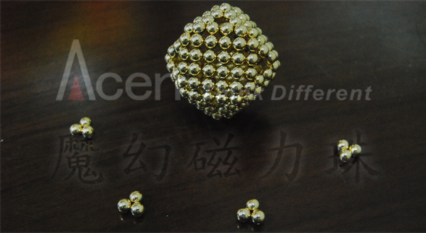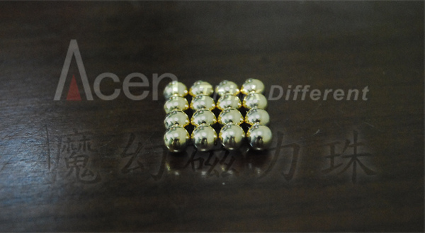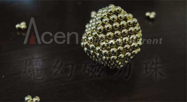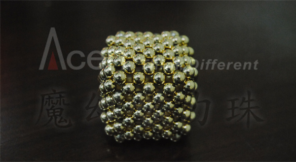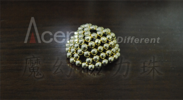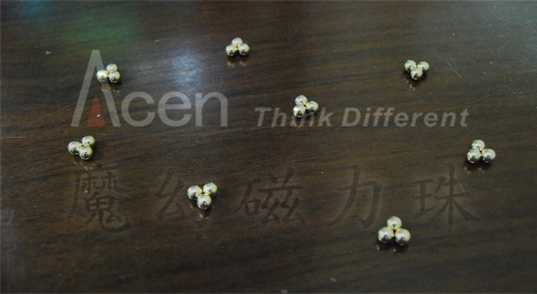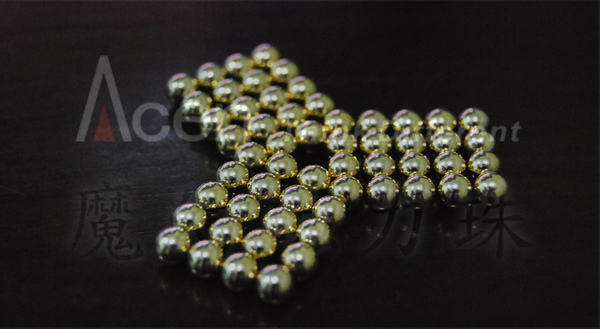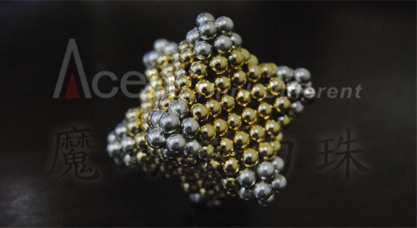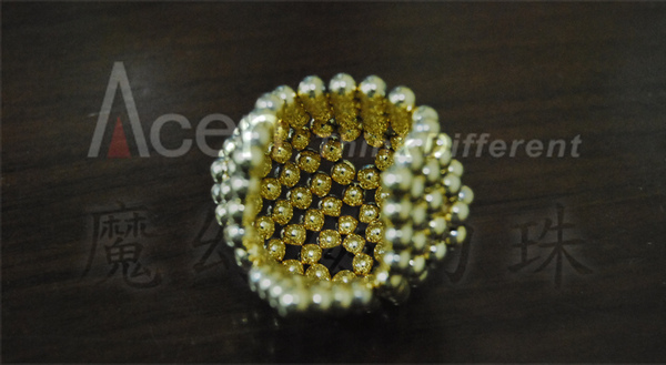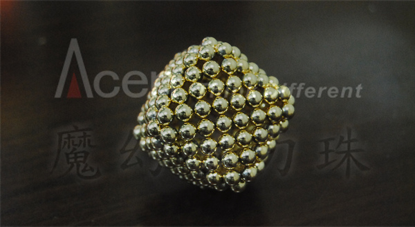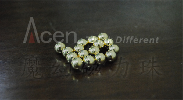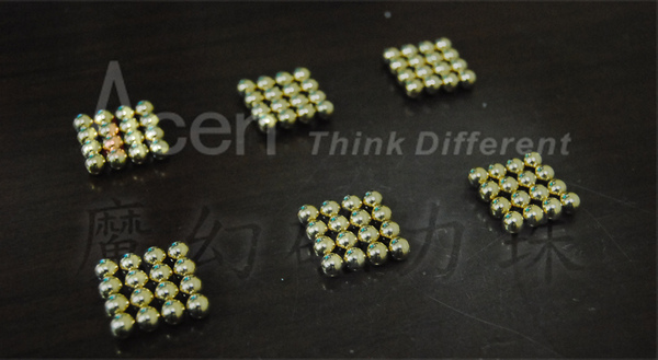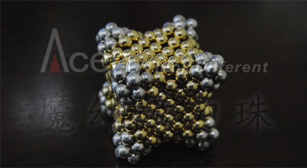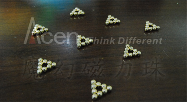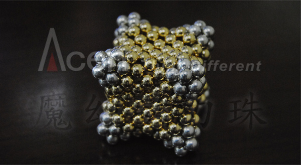 完成後~找來銀色的磁力珠~將原始正方體最後補上的八個三角形角點拆掉~再用九顆以負向銜接法裝在八個角點上~就會像以下的照片啦..